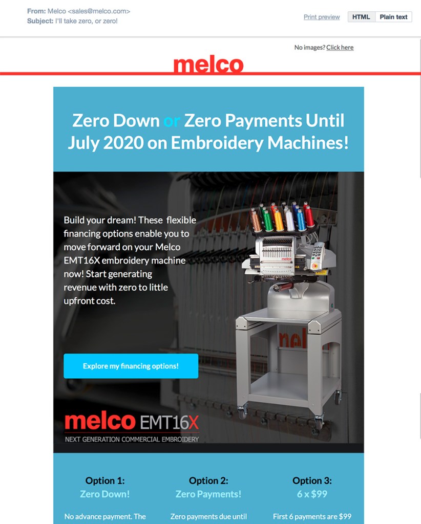 Email for eCommerce requires a different approach all-together. The objective for this campaign was to boost sales for ShopMelco.com, which can be rather anemic depending on seasonal slow-downs. This campaign boosted sales by over 200%, resulting in a record-setting month.