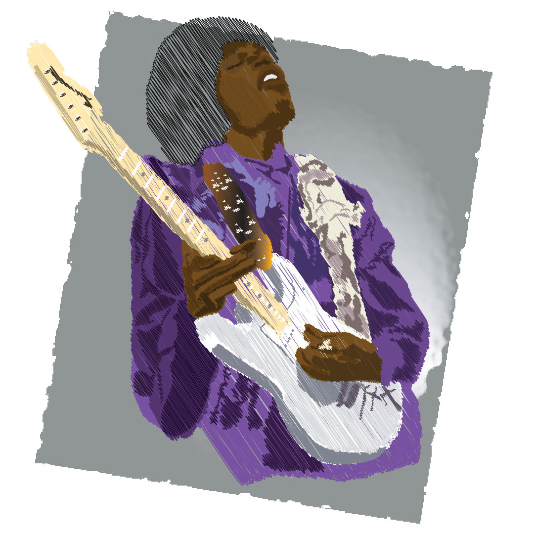 Digital illustration is amazingly versatile. One of the most practical applications is simply converting raster images into vector art that can be easily scaled and reproduced on a huge variety of formats. While the illustration of Jimi Hendrix is something I did just for fun, the embroidery machine illustration was used as an icon on a trade show backdrop, and is suitable for numerous other applications, including embroidery, or as an icon for web graphics.