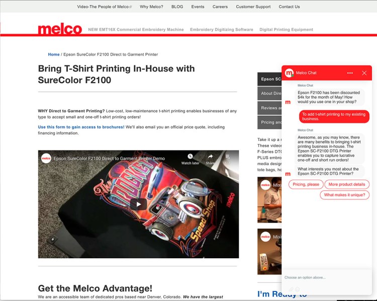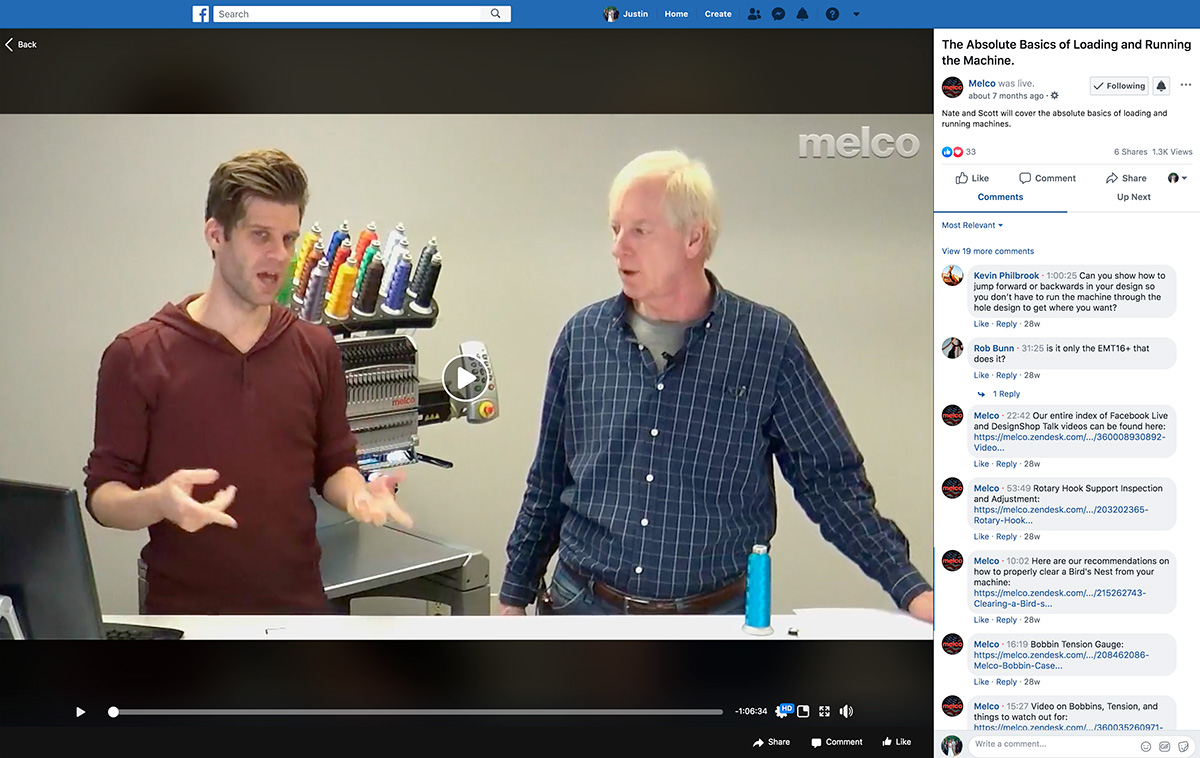 A big part of the Melco value proposition is client connection. I initiated a webinar program, then quickly switched gears to Facebook Live when I realized how much easier it was to reach our audience with live demos on the social media giant. With a following of 25,000 and growing, it just made sense to leverage this channel, in collaboration with the training and applications team. They now run three live sessions per week, focusing on various aspects of embroidery, digitizing, and digital printing.