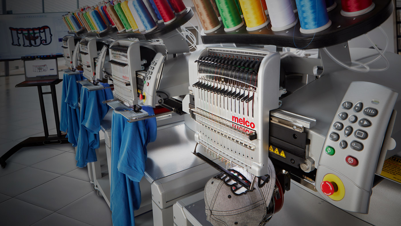 These awesome looking machines lend themselves nicely to beautiful photography. As lead on this project, I was tasked with making the viewer imagine this machine in their shop or production facility. Not only that, these photos needed to show that Melco machines and software are capable of producing high quality embroidery on the hats, jackets, and other apparel and clothing items that they sell.
