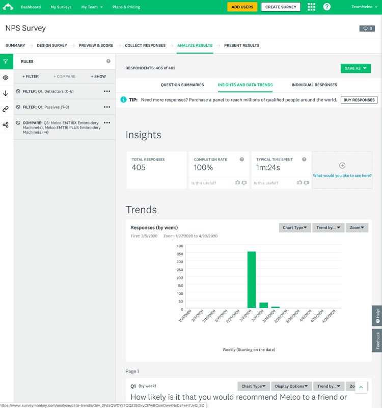 With over 400 responses, a completion rate of 100%, and detailed information about why clients gave their score, this survey was highly successful and provided valuable insights about what the company is doing well, and where improvements could be made.